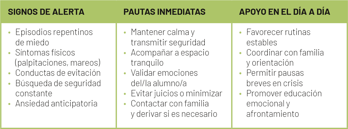 El trastorno de pánico se caracteriza por la presencia de crisis de ansiedad intensas y recurrentes que aparecen de forma súbita, acompañadas de síntomas físicos (palpitaciones, sudoración, temblores, sensación de falta de aire, mareo, dolor torácico, náuseas) y cognitivos (miedo intenso a perder el control, volverse “loco/a” o morir). Estas crisis suelen generar un fuerte malestar y pueden llevar a la persona a evitar situaciones en las que teme que se repitan, lo que limita su vida diaria (por ejemplo, miedo a ir al colegio, salir solo/a o usar transporte público).